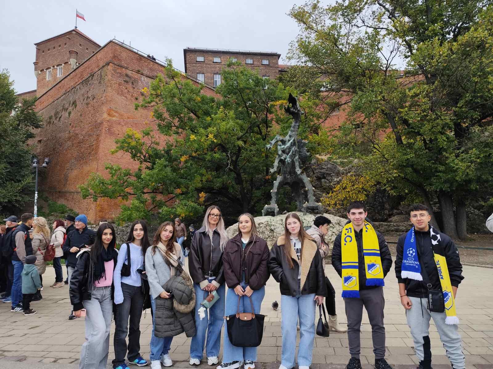 Την εβδομάδα 4-11 Οκτωβρίου, ομάδα 8 μαθητών/τριών του σχολείου μας ταξίδεψε στην Κρακοβία στο πλαίσιο κινητικότητας του προγράμματος Erasmus+. Η ομάδα φιλοξενήθηκε στο 6ο Λύκειο A.Mickiewicz, όπου οι μαθητές/τριες είχαν την ευκαιρία να παρακολουθήσουν μαθήματα και να γνωρίσουν τους ντόπιους μαθητές. Επίσης, κατά τη διάρκεια της παραμονής τους στην Κρακοβία εξερεύνησαν την παλιά πόλη και το κάστρο και ξεναγήθηκαν στα στρατόπεδα συγκέντρωσης Άουσβιτς και Μπίρκεναου, στο αλατωρυχείο Wieliczka και στο εργοστάσιο του Schindler στην Εβραϊκή συνοικία.