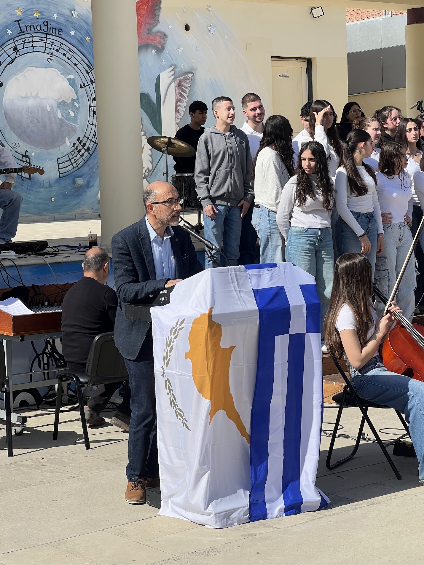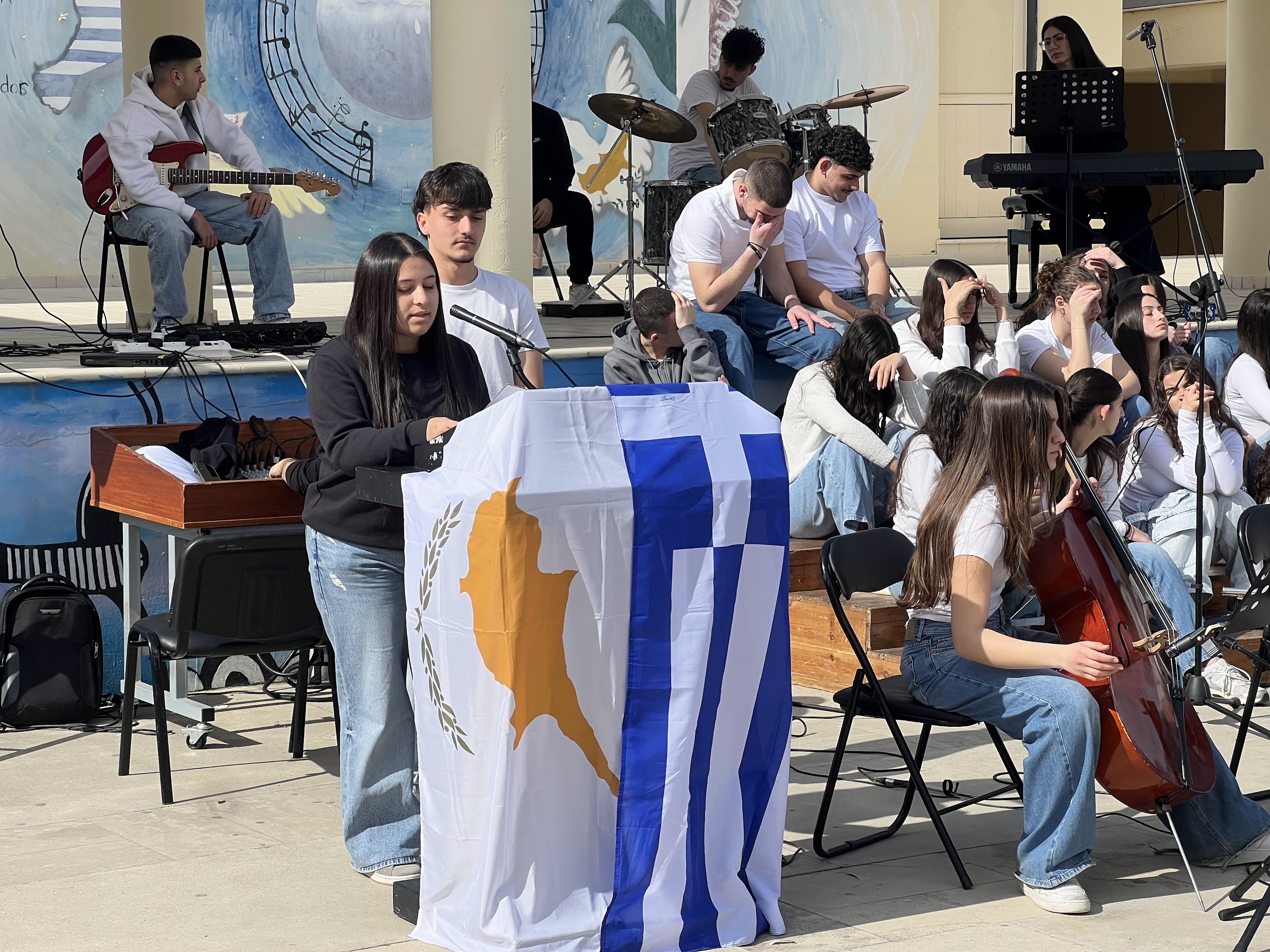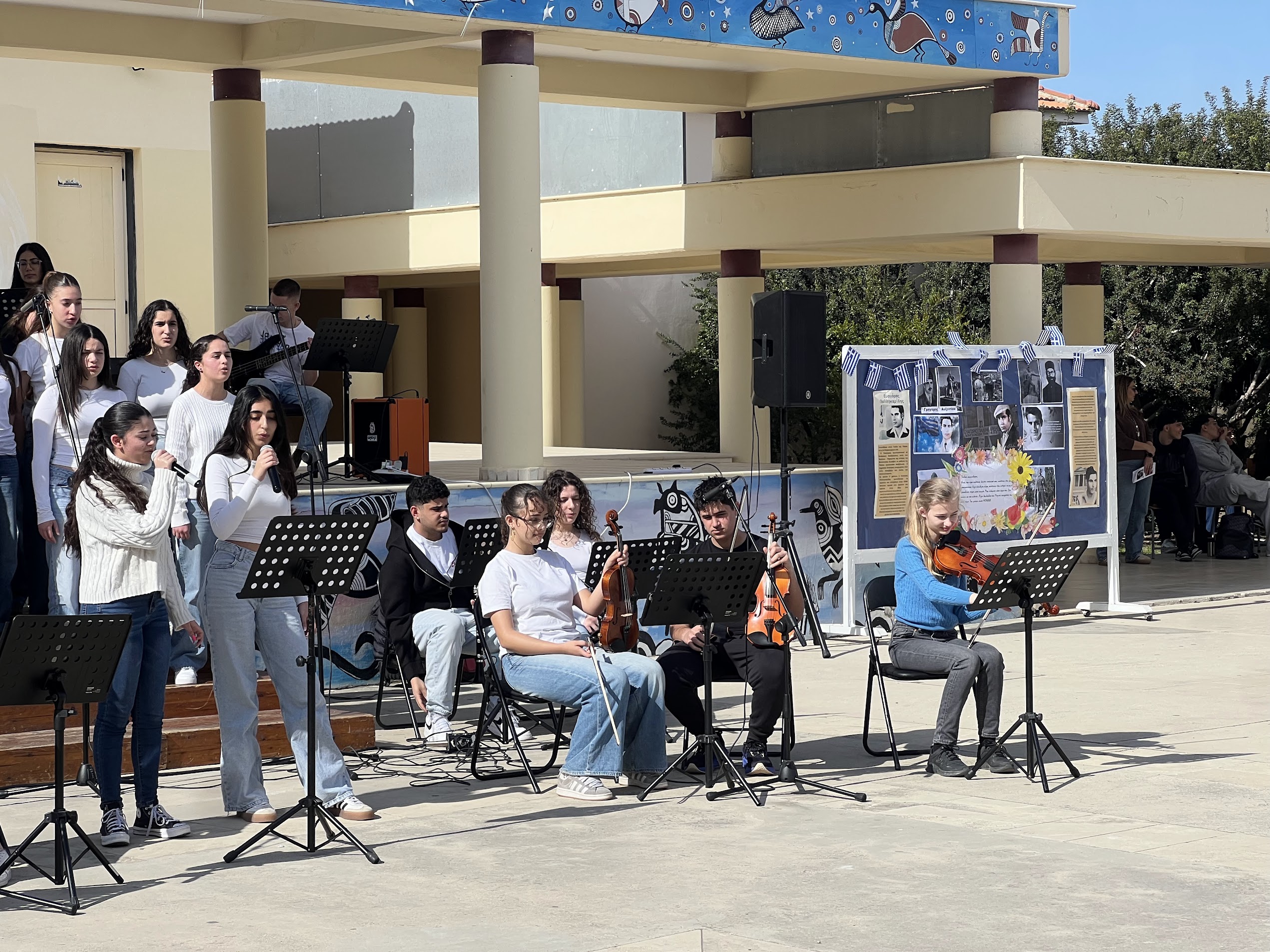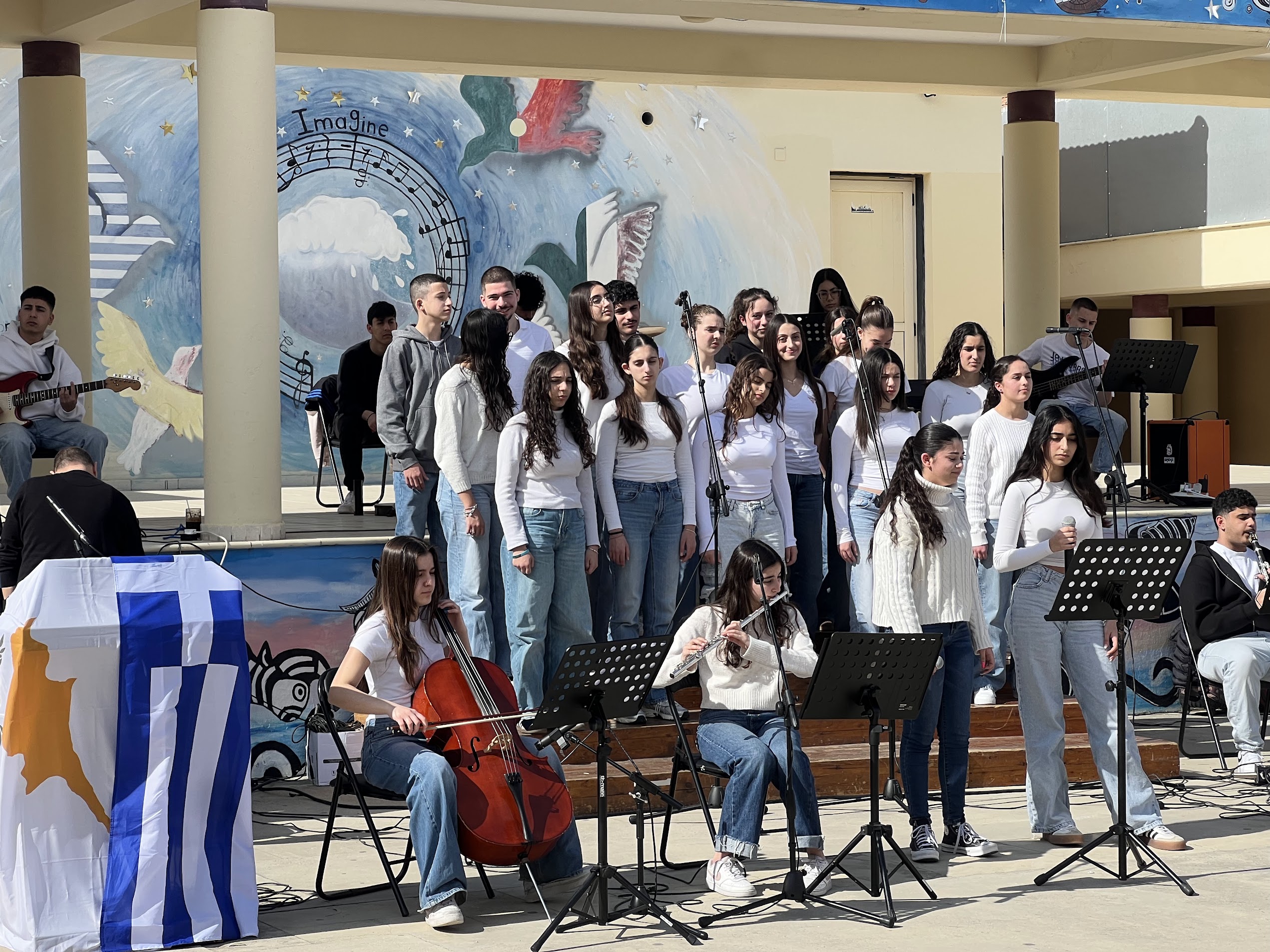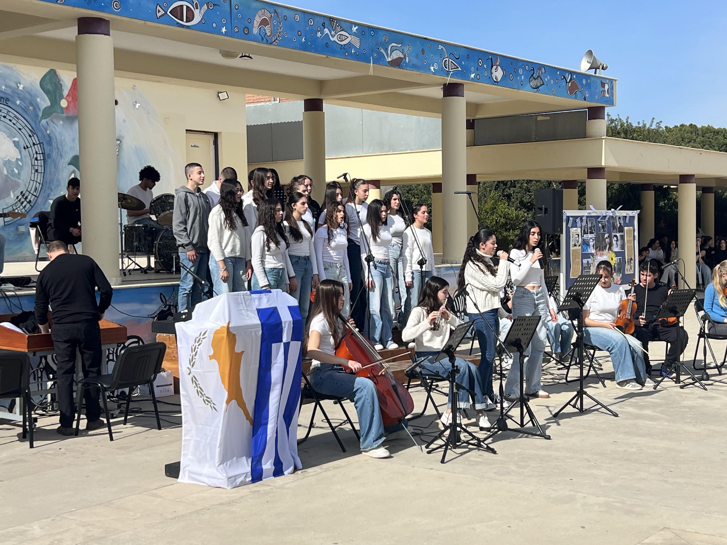 Ιδιαίτερα συγκινητική στιγμή της εκδήλωσης αποτέλεσε η μουσική παρέμβαση των μαθητών του Μουσικού Λυκείου του σχολείου μας, οι οποίοι ερμήνευσαν τραγούδια αφιερωμένα στους αγώνες και τις θυσίες του κυπριακού ελληνισμού, συμβάλλοντας στη δημιουργία μιας ατμόσφαιρας σεβασμού και μνήμης.