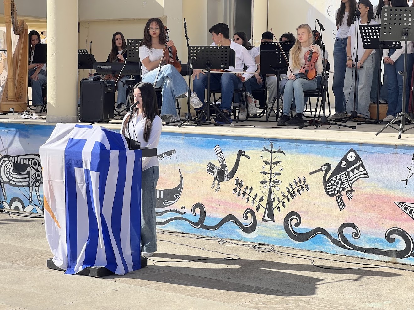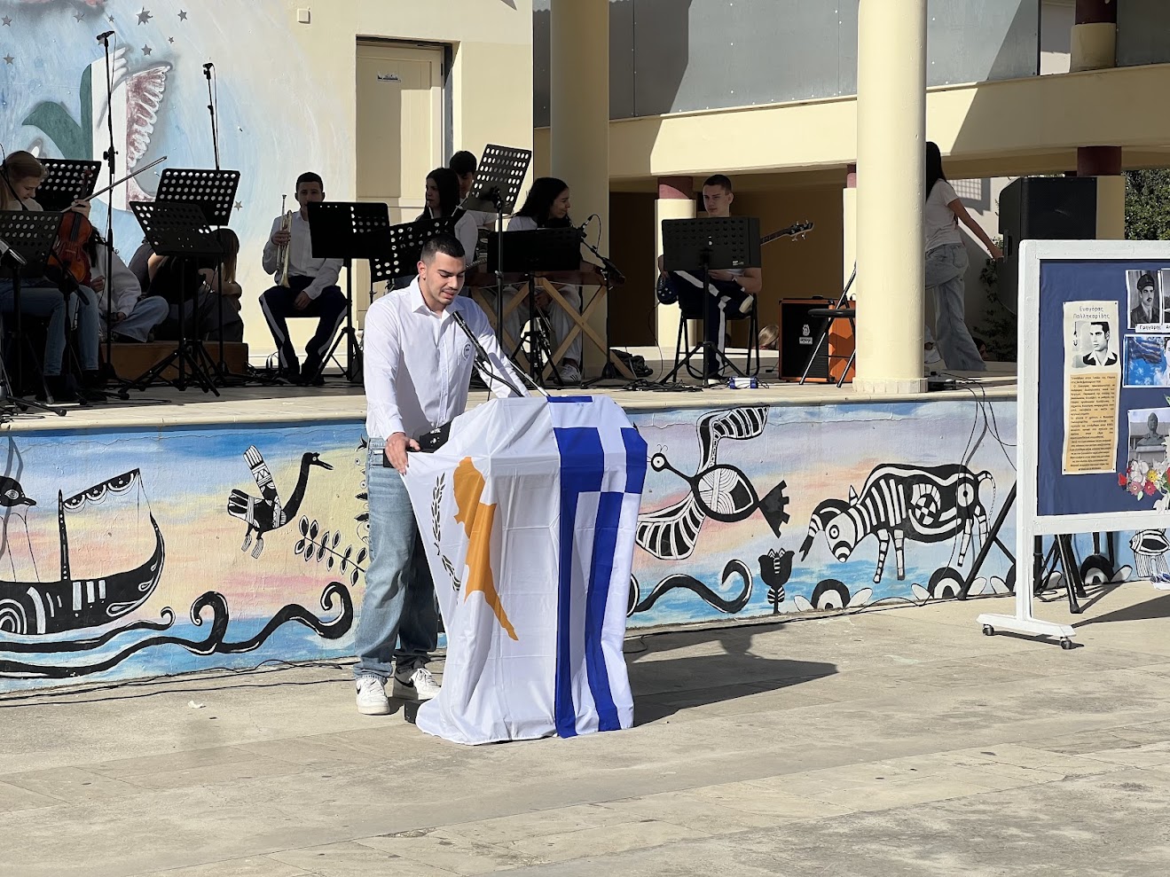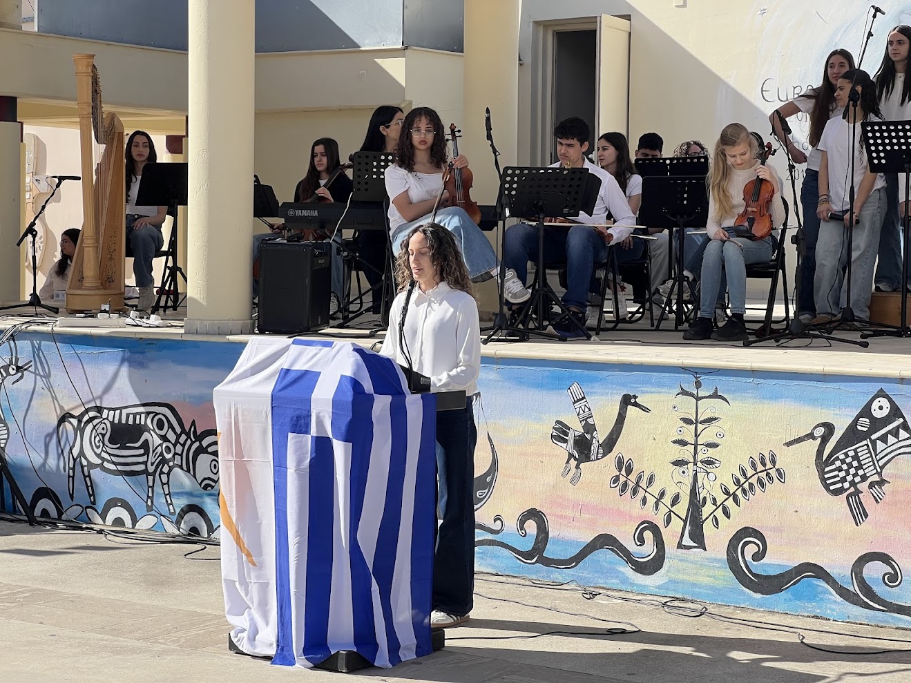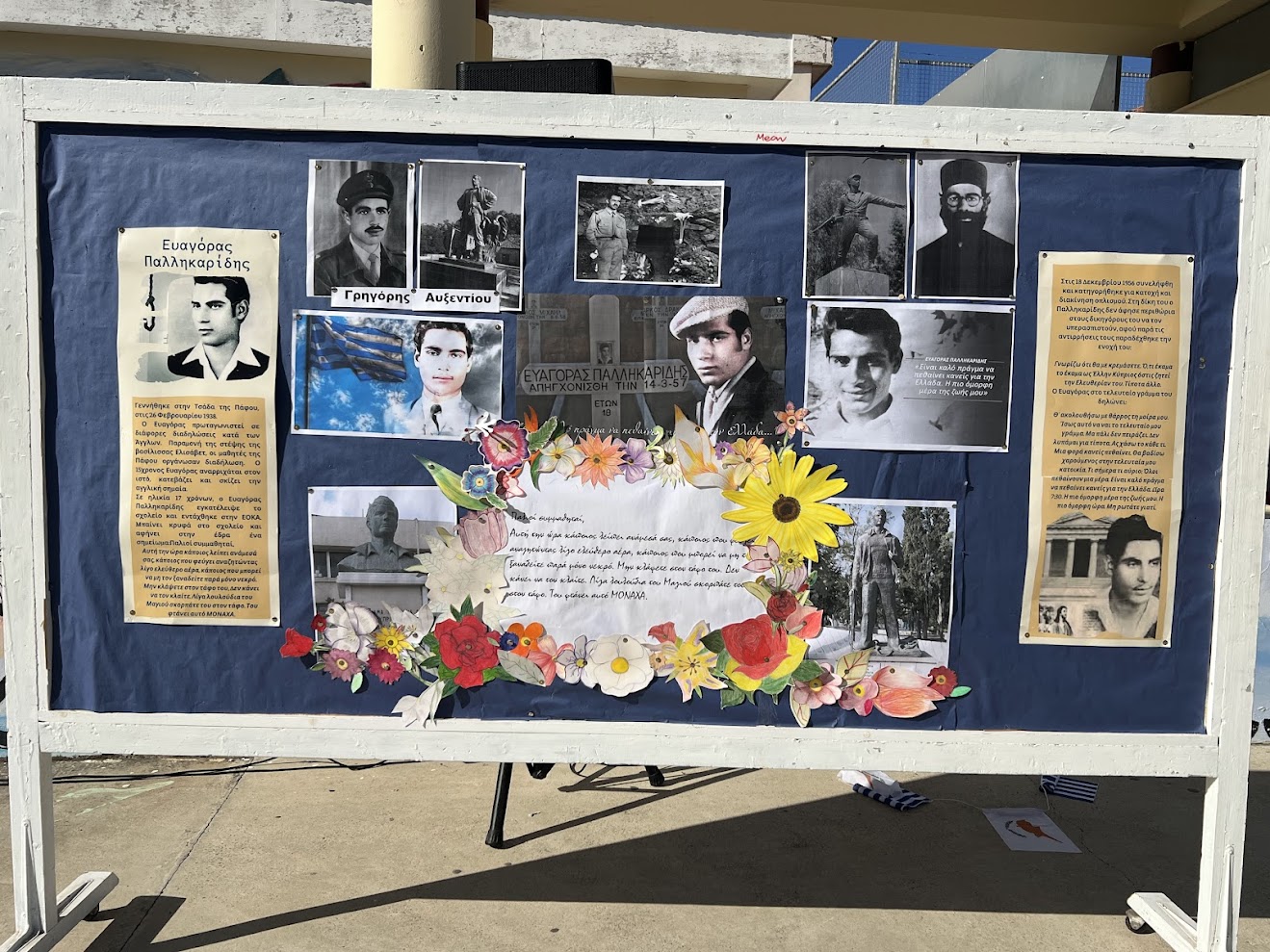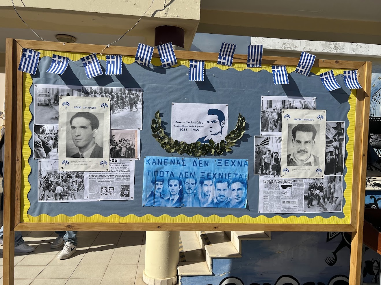 Με σεβασμό και συγκίνηση πραγματοποιήθηκε στο σχολείο μας εκδήλωση για την Εθνική Επέτειο της 1ης Απριλίου 1955-1959, τιμώντας τον αγώνα της ΕΟΚΑ και τη θυσία των ηρώων που αγωνίστηκαν για την ελευθερία της Κύπρου.
