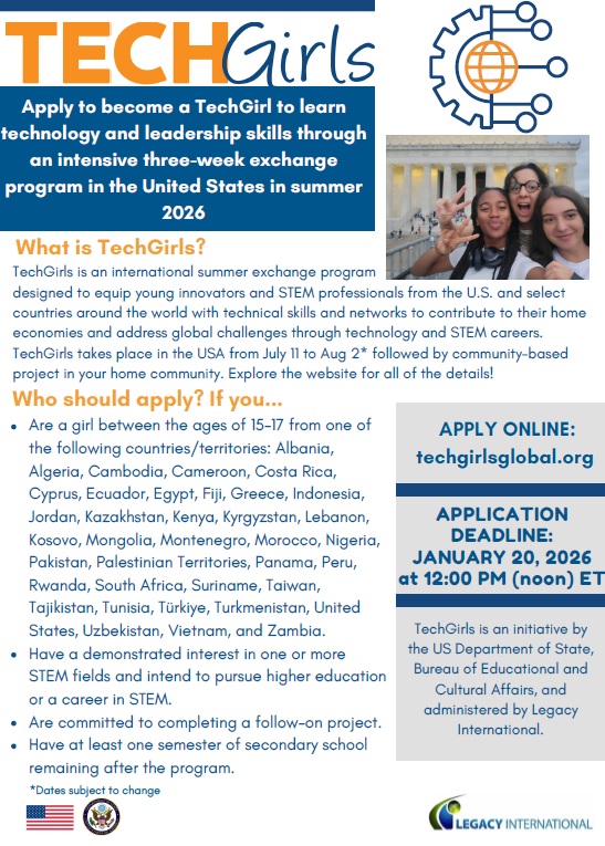 Call for Applications - 2026 TechGirls program