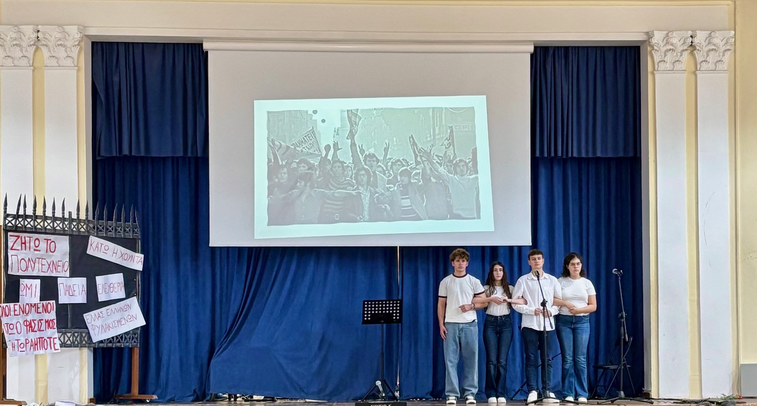 Το σχολείο μας τίμησε την Επέτειο του Πολυτεχνείου με μια όμορφη εκδήλωση, στην οποία οι μαθητές παρακολούθησαν καλλιτεχνικό πρόγραμμα αφιερωμένο στα γεγονότα του 1973. Η εκδήλωση ανέδειξε τα μηνύματα της ημέρας και υπενθύμισε τη σημασία της δημοκρατίας και της ελευθερίας.
